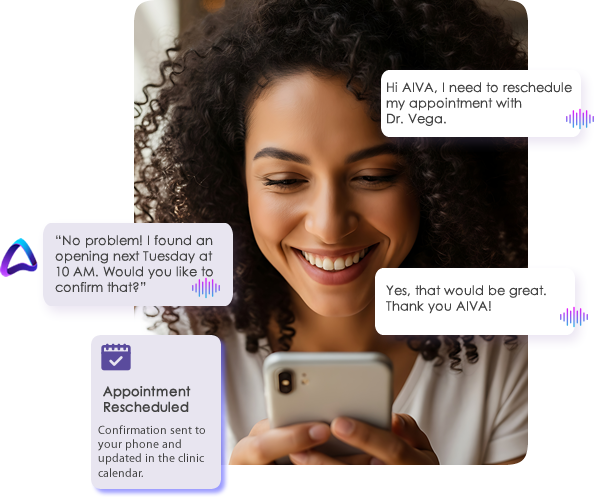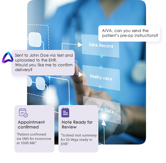 AIVA enables a continuous loop between patients, staff, and providers. It delivers personalized, timely interactions, confirming appointments, routing messages, triaging requests, and capturing documentation, all while learning from every exchange.