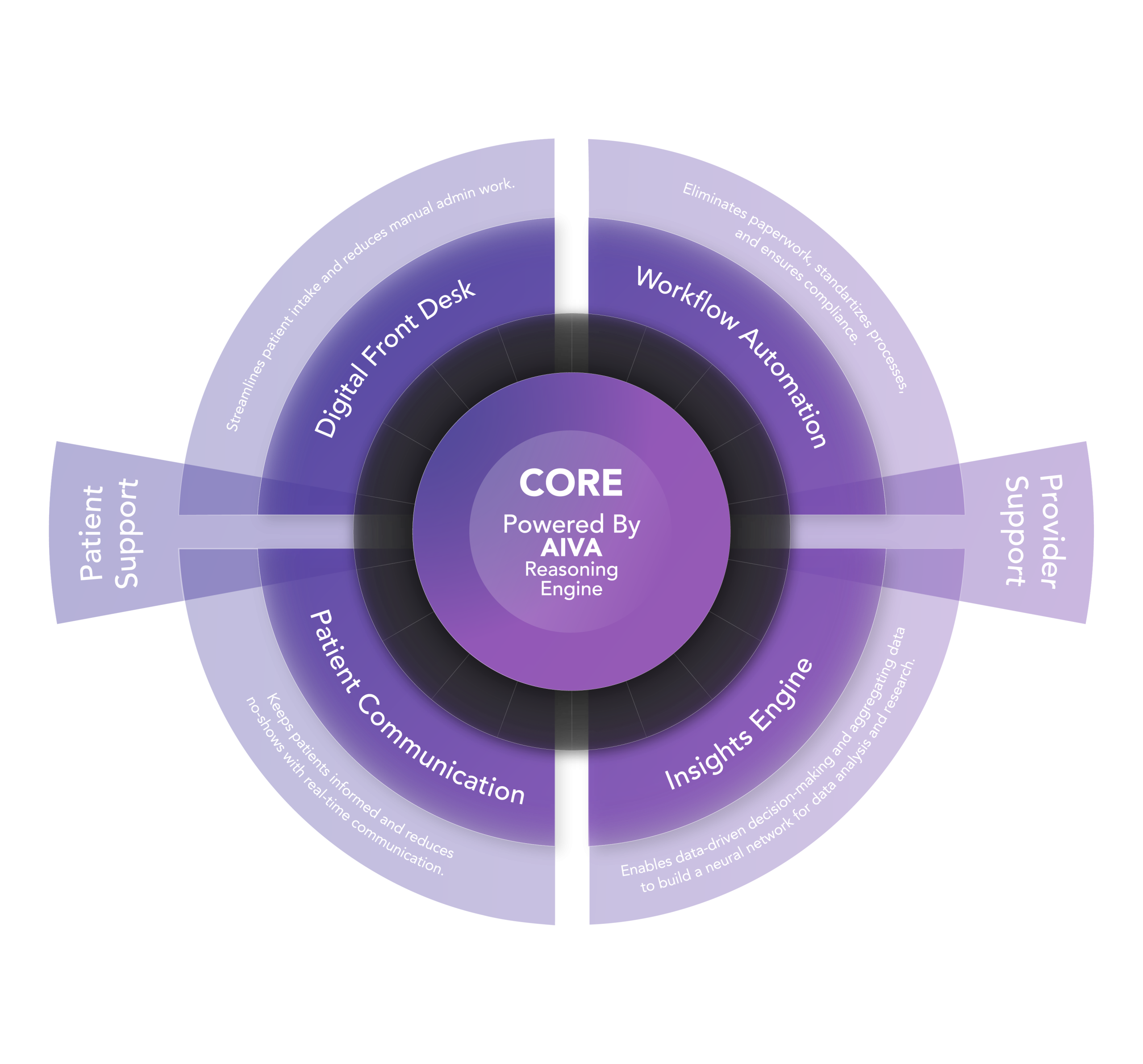 The AIVA Reasoning Engine™ is the brain behind our platform, designed specifically for healthcare. It goes beyond natural language processing by combining contextual understanding, data reasoning, and intent recognition.